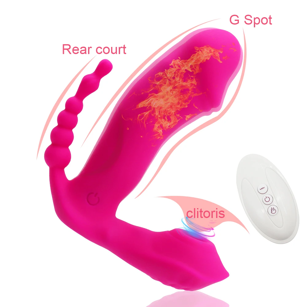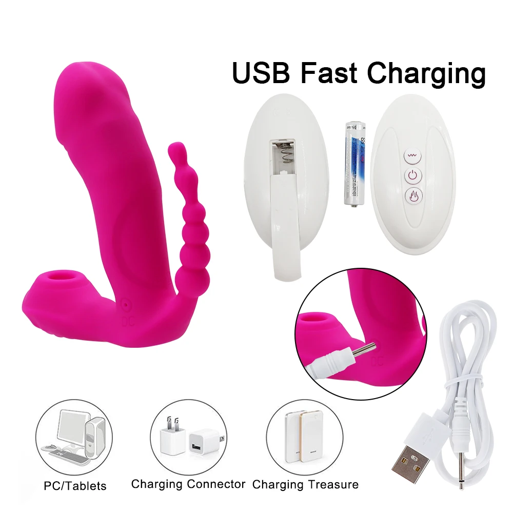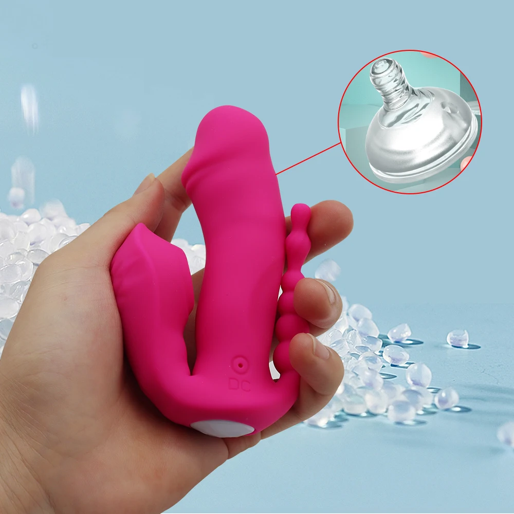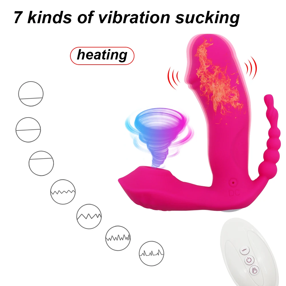 Vibrador 3 em 1 com sucção, estimulador anal, vaginal e clitoriano, 7 modos de vibração, vestível e com sucção oral. Brinquedos Sexual Feminino